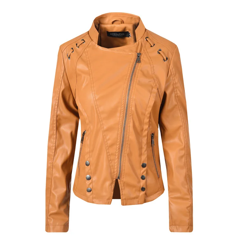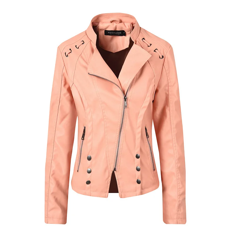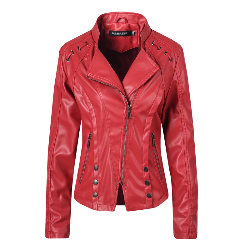 Images of 2019 Autumn Black PU Leather Jacket long-sleeved Women Fashion Coat Female Casual Outerwear Large size Leather Jacket Women :