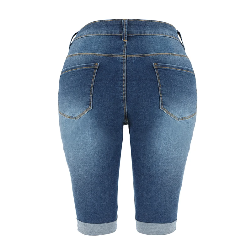 New Denim Bermuda Shorts Women Middle Rise Elastic Knee Length Shorts Summer Curvy Stretch Moto Short Jeans Pants