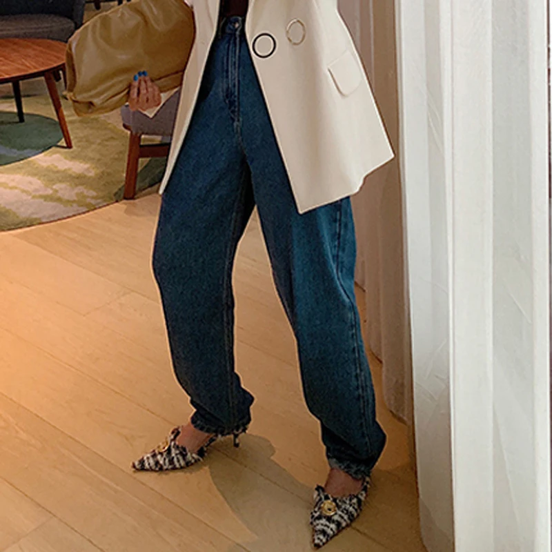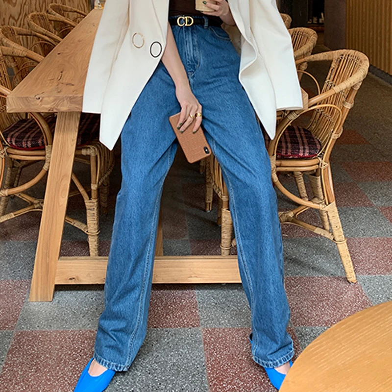 Best Offer SHIJIA High Waist Pockets Female Denim Trousers Vintage Chic Floor-length Jeans Women Wide Leg Jeans Ladies Blue Jeans Pants